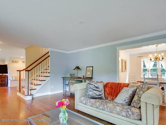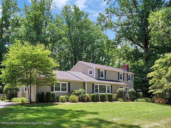 Unmatched privacy and serenity await you. Enjoy the beauty of living on a private cul de sac location in Lincroft. Beautiful open floor plan, gleaming hardwood floors throughout and finished basement. Newer designer kitchen with granite counters and stainless steel, high end appliances. Spacious first floor master suite with full bath. Second level offers 4 bedrooms and full bath. Back yard is it's own oasis with in ground pool with salt water system, large paver patio and deck. A commuters delight located minutes to GSP, bus or train. Don't miss out!