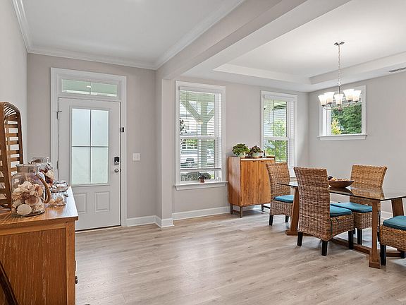 This 5-bedroom Energy Star certified home has it all! Open floor plan, abundance of natural light, LVP floors on main, a Chef's dream kitchen with a gorgeous island, stainless steel appliances, quartz countertops & subway tile backsplash. Adjacent to the kitchen & separate dining room, you'll find a butler's pantry & walk-in pantry. The first floor bedroom makes the perfect guest suite/private office. The second floor boasts an oversized owner's suite with spacious en suite bathroom, with garden tub & separate tiled shower, 3 additional bedrooms & bonus room. Community Pool, Playground & Dog Park. Close proximity to everything you need: Harris Teeter, Publix, Heritage High, and restaurants!