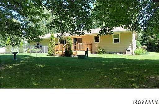 Great private setting minutes from Rice Lake. Large yard in quiet neighborhood on dead end rd. Large windows with lots of natural light, 2 main floor liv rms, lots of storage & a great functional layout. Nice backyard deck along with fenced yard. Windows replaced in 2014, blacktop sealed in 2015. Enjoy the private backyard around patio with fire pit, while taking in the serenity of Tuscobia Lake. Home has been very well cared for over the years.