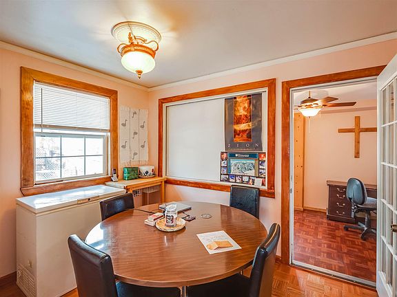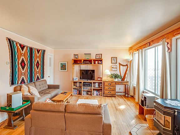 End Condo unit with large backyard in North Community. A paved front patio and wood steps lead to your front entry-mudroom with enough space for a bench and shoe storage. You walk into a cozy living room with wood floors and crown molding that continue throughout the home, wood burning stove and wall to wall front facing windows creating plenty of natural light to your space. A spacious closet under your stairs for extra storage. The dining room and kitchen have parquet wood floors and built-in shelving in the dining area. Corner Kitchen has ample wood cabinets with chrome hardware, gas stove, stainless steel fridge, and washer hookup and a double sink overlooking your backyard. A large Den with a dryer hookup gives you access to your backyard. On the second floor there's three bedrooms and a full bath with a single sink vanity with chrome hardware and wood paneling on the walls. Huge fenced in backyard with a paved patio area for dining or firepit. There's a basement with a workshop and tons of shed storage space under stairs. Three off street parking spaces and a large front lawn with mature trees. Fantastic neighborhood with great mountain views, must see.