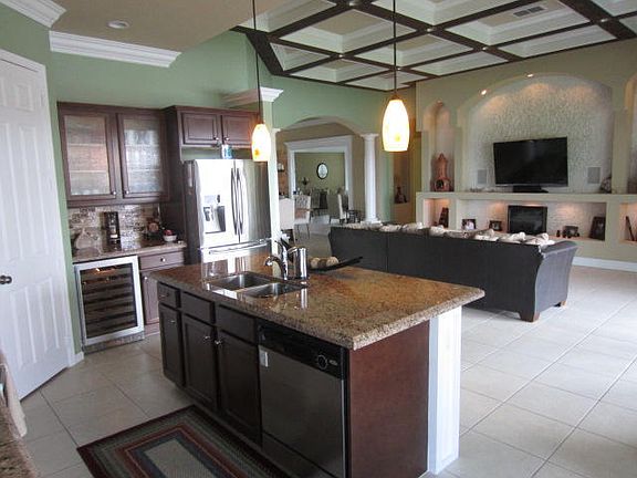 Absolutely immaculate, lakefront home in gated community. Upgrades throughout! Custom mirrors and ceiling treatments in living area. Upgraded kitchen features granite and stainless steel appliances as well as a wine cooler. Property has a split floor plan and a very spacious living area. Home has tile throughout all main areas and carpet in bedrooms. This home also has a very spacious office which could be a 5th bedroom. Master bedroom features two Custom built closets. Custom wall unit and upgraded moldings throughout!!