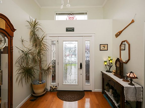 Custom home located in a tucked away neighborhood on a cul-de-sac. RV parking, private fenced yard that is a bird watchers paradise, located within walking distance of paths and community park, open floor plan, vaulted ceilings, a cooks delight with 6 burner gas stove, new stainless appliances, island, pantry. hardwood oak floors, grand entryway, indoor laundry, 3 beds and 2 baths. finished garage with sealed floors. Very light and bright with lots of natural lights provided by windows, skylights and a sky tube .
