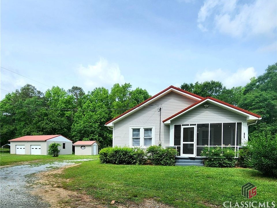 CHARMING Farm house sitting on 2.59 Acres with 6 car garage!!!! This updated 3 bedroom x 2 bathroom home has tons of Character from the Spacious screened in porch, through the open Livingroom with attractive boarded brick fireplace, then through the double doors to the large dinning room and Kitchen, Upgraded with Granite countertops and Stainless appliances (including fridge)! Not to mention the Luxury Vinyl plank flooring and well cared for Hardwoods, the unique jack and jill style bathroom with double vanities, Beadboard accents throughout, large bedrooms and that's just the inside. The exterior features a 6 car detached garage with Carport, Concrete shed complete with painted GA bulldogs logo (Go Dawgs) all while being Conveniently located minutes from Shopping and restaurants right off Atlanta Hwy. DONT MISS OUT ON THIS ONE!
