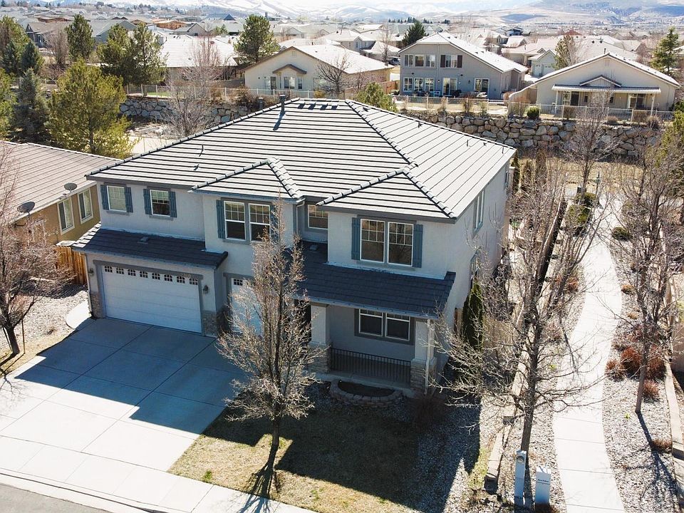 This beautiful and immaculately maintained open-floor plan house is upgrades galore situated in South Reno in a very quiet neighborhood, just at the entrance to col-de-sac. Featuring a ton of upgrades and a convenient location, this home is the perfect blend of comfort, elegance, space, and style. NEW waterproof premium laminate wood floors, NEW paint, NEW plumbing, ~20 ft ceilings, two fireplaces, full bath and a bedroom downstairs, two large living spaces, open loft, bar area, beautiful crown moldings., Hunter Douglas window shades and shutters on most windows, central vacuum, enormous master suite with walkout balcony and a 2nd fireplace with jetted tub and two large walk-in closets, kitchen with quartz countertops and full backsplash, under cabinet lighting, new oven-microwave combo and dishwasher, closet mirror sliding doors. Fully landscaped backyard with beautiful terrace walls, paved side yard. No neighbors on three sides, long drive way and easy access to walkway. Don't miss!
