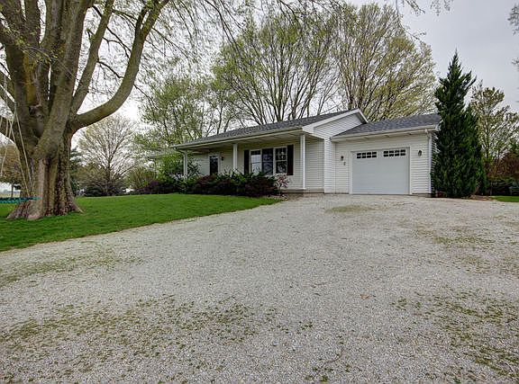 Spectacular view from the top of the ridge looking south from the front porch of this rural ranch. 2 bed 1.5 bath with full unfinished basement sitting 4.95 acres. Get ready to micro farm or just enjoy the mature landscaping. Nice 30x40 Metal Building with heat, water and electric. Updated handicap bath. Living Room Carpet 2019, All new interior paint 2019, Dishwasher 2019, Bedroom Carpet 2018, Kitchen, Utility Tile 2018, Roof 2009, Basement and attached garage has epoxy flooring.