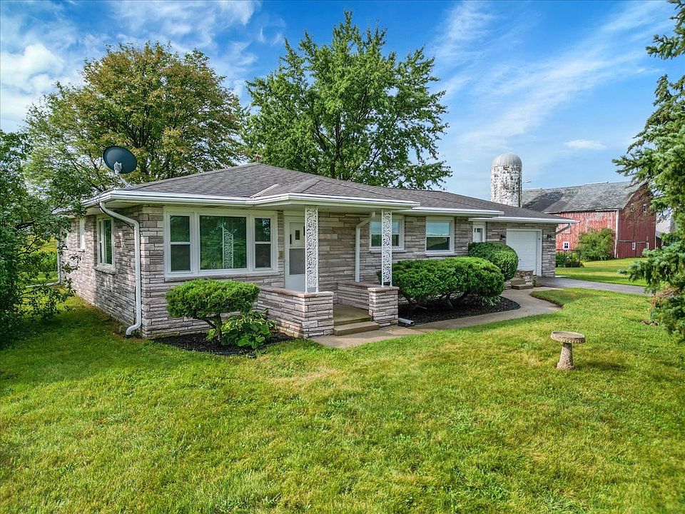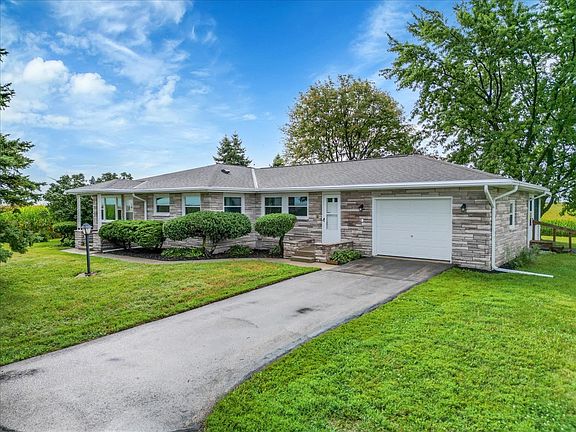 Buyers financing fell through...Don't miss out on this opportunity. Experience the best of country living just outside of town in this beautifully maintained brick ranch, nestled on over 4 acres of picturesque land, perfect for animals, homesteaders, or those seeking a tranquil retreat. The home offers generous room sizes, including a well-equipped kitchen with ample counter space and cabinets, along with bedrooms featuring custom built-in closets with drawers. Past and current owners have utilized the living room as a third bedroom, offering breathtaking sunrise views in the morning. A bright sunroom filled with natural light provides a welcoming space for gatherings, while a spacious laundry area adds convenience. The additional detached two-car garage with a propane-heated workshop and bath, along with several outbuildings, offers endless possibilities for storage, hobbies, or homesteading needs. PLUS, an acre of restored natural prairie enhances the property's charm, making it a haven for nature lovers. This well-maintained home with a great floor plan is move-in ready and invites you to bring your own ideas to make it uniquely yours. Just 4 minutes to Jonamac Orchard, 9 minutes to Kishwaukee College, 10 minutes to DeKalb, 12 minutes to Northern Illinois University, and 15 minutes to Rochelle.