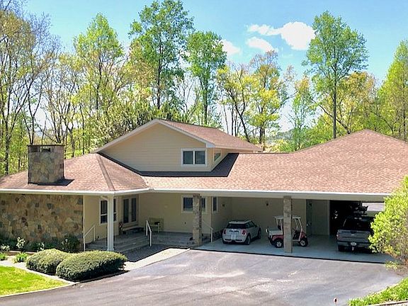 Location, location, location! One-of-a-kind home on one acre in highly desired lake community of Hidden Valley Estates. Previous owner built 2,200’ custom home w/attached 3,600’ garage for extensive classic car collection. Home sits down a private drive, surrounded by woods, rhododendrums, and lovely landscapes. Back yard has fenced area for small children or pets. This beautiful 3 bd/2 ba home (master on main) features Hardiboard concrete siding, Pella windows/doors, and oak floors w/custom baseboards/trim throughout. Built-in cabinets flank stone (gas) fireplace in LR, connected to 1,000 gal (below ground) propane tank. Kitchen/dining areas feature wooded views, vaulted ceilings, skylight, pantry, SS ref/stove and cooktop, microwave, trash compactor, and two adjoining covered stone patios. Next to laundry rm is 100’ mudroom w/ample space for freezer, doggie beds, storage shelves. Bedrooms have walk-in closets, full bath on each floor, and 2nd-floor small loft. Spacious stone patio off LR connects to expansive covered breezeway for 3 vehicles (or ping-pong table, golf cart, etc). Large office adjoins breezeway and garage, w/lounge space, kitchenette, and private 1/2 bath (could be repurposed as studio). The 60’x60’ garage features 15’ ceilings, two 10’ tall automatic garage doors w/front/rear access, a workshop, gym/recreation space, and loads of boat/RV/car storage. Has separate HVAC unit and 80-gallon industrial AC compressor. Wrap-around driveway provides two separate parking areas in front and back of house/garage, each w/room for 6-8 vehicles. House has new water heater and new exterior paint. Added bonus is 56” tall, insulated crawlspace underpinning entire house - loads of extra room for lake toys, yard supplies, etc. Wonderful neighbors and neighborhood. Enjoy walking/jogging, birdwatching, nature, etc. Hidden Valley’s peninsula is surrounded by Lake Chatuge. HOA owner’s lot has lake access for jet skis/kayaks/canoes (no HOA fees!). Only 3 miles from downtown Hiawassee, yet a world away. Call for a showing today!