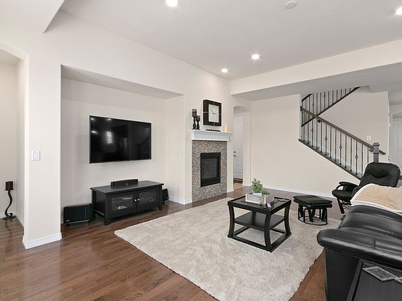 Feel secure in owning your gorgeous sanctuary in The Meadows! The upgrades are instantly evident the moment you walk in. Solid hardwood floors run throughout the open floor plan filled with natural light. The fully upgraded kitchen offers seamless granite slab counters, GE stainless steel appliances along with a gas cook top and a walk-in pantry. The kitchen opens up to the inviting family room where you will find a well designed gas fireplace. The main floor master includes an amazing walk-in closet and an over-sized 5 piece master bath. New plantation shutters compliment an abundance of sun filled windows. The upstairs has 3 large bedrooms. One of the bedrooms has its own full bathroom and walk-in closet and the other two bedrooms share a Jack and Jill bathroom. The large full basement is waiting for you to add your personal touches! The larger corner lot features many exterior upgrades including new covered back paved patio, professionally landscaped yard with sprinklers front and back. Furnace upstairs and down, 2x AC units. 10 year builder structural warranty. Solar panels with 20 year agreement transferred to buyer. Enjoy walks to Deputy Zach Parrish Memorial Park, Red Hawk Ridge Golf Course, Taft House rec and pool, The Outlets at Castle Rock & more. Check out the 3D Matterport virtual walk through.