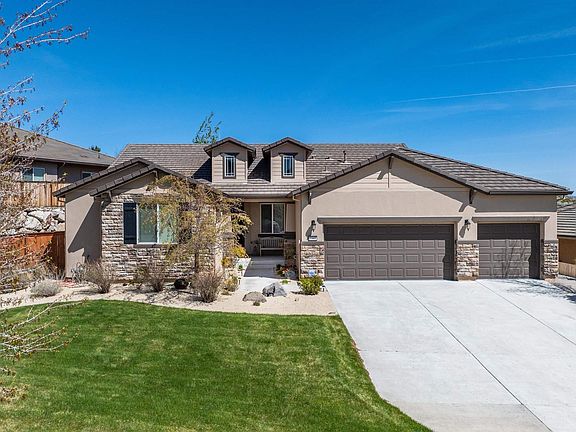 Welcome to your dream home in the prestigious Somersett golf community in Northwest Reno! This stunning one-story residence is a haven for those seeking luxury, convenience, and breathtaking views. Situated on a generous .32 acre lot in a tranquil cul de sac, this home offers exclusivity and serenity in one of the most sought-after neighborhoods. As you step into this meticulously maintained property, you'll be captivated by the expansive mountain views that greet you, providing a picturesque backdrop to, your everyday life. With no rear neighbors and a ravine behind, enjoy unparalleled privacy and tranquility in your own backyard oasis. Inside, the home boasts a plethora of upgrades and features designed for upscale living. The recently updated landscaping adds to the curb appeal, while the newly replaced water heater ensures modern efficiency. The raised garden beds on the side of the home allow you to indulge your green thumb and grow your favorite plants effortlessly. Entertain guests or simply unwind in style on the expansive patio, offering evening shade and perfect for enjoying al fresco dining or relaxing under the stars. The east-facing backyard ensures you can savor cool evenings while taking in the panoramic vistas. For the culinary enthusiast, the kitchen is a chef's delight with a Thermador oven, gas cooktop, and ample counter space for meal preparation. A separate office/den with French doors provides a quiet retreat for work or relaxation. The Somersett community offers an array of amenities, including access to the clubhouse with workout facilities, pools, exercise classes, pickleball courts, and an indoor basketball court. Golf enthusiasts will appreciate the nearby Golf and Country Club with private membership, while outdoor enthusiasts will love the 27 miles of trails surrounding the neighborhood. Conveniently located just 15 minutes from the California state line, this home also benefits from proximity to highly rated schools, skiing within 30 minutes during winter, and the vibrant Town Center at Somersett with its variety of restaurants and bars. With a 3-car wide garage that can accommodate a golf cart, this home seamlessly blends luxury, functionality, and lifestyle, making it a must-see for discerning buyers. Don't miss this opportunity to live in one of Reno's most desirable communities – schedule your showing today!