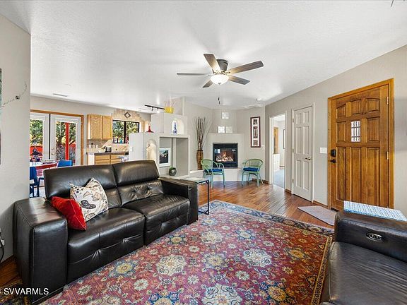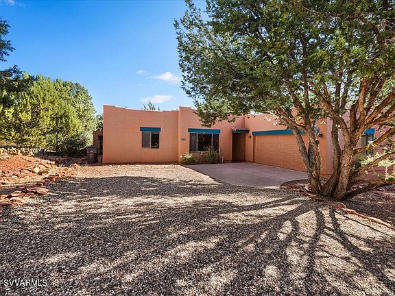 Nestled in the trees in the desirable Sedona Meadows neighborhood. 3 BR, 2 Bath split bedroom plan and 2 car garage. Beautifully landscaped back yard and patio offer seclusion and serenity to enhance the Sedona lifestyle. Newer HVAC installed in 2022 and a gas fireplace to keep you cozy. Movie theaters, restaurants, banking, shopping and hiking trails are a few blocks away. Currently a successful short term rental, No HOA.