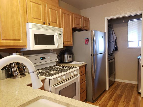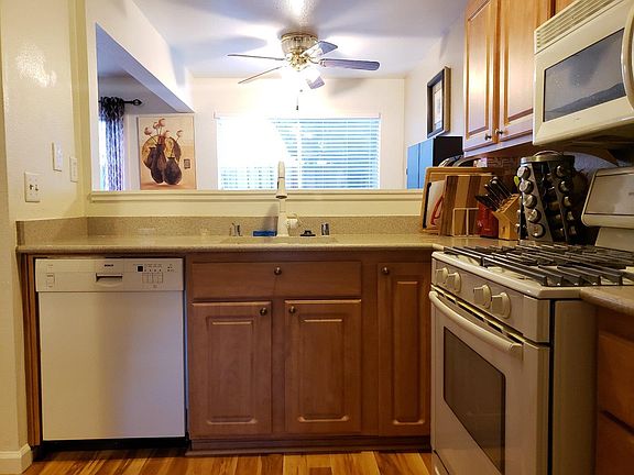 Spacious split-level condo with oversized living room and bedrooms. The first floor living area has laminate floors, gas starter corner fireplace, updated kitchen, indoor laundry room, nice fenced back yard, and rare garage. The oversized master bedroom suite has walk-in closet and spacious master bathroom, oversized bedroom-2 has views and more. Close to proximity to schools and shops. Easy access to HWY 101.