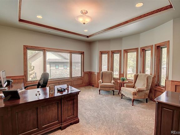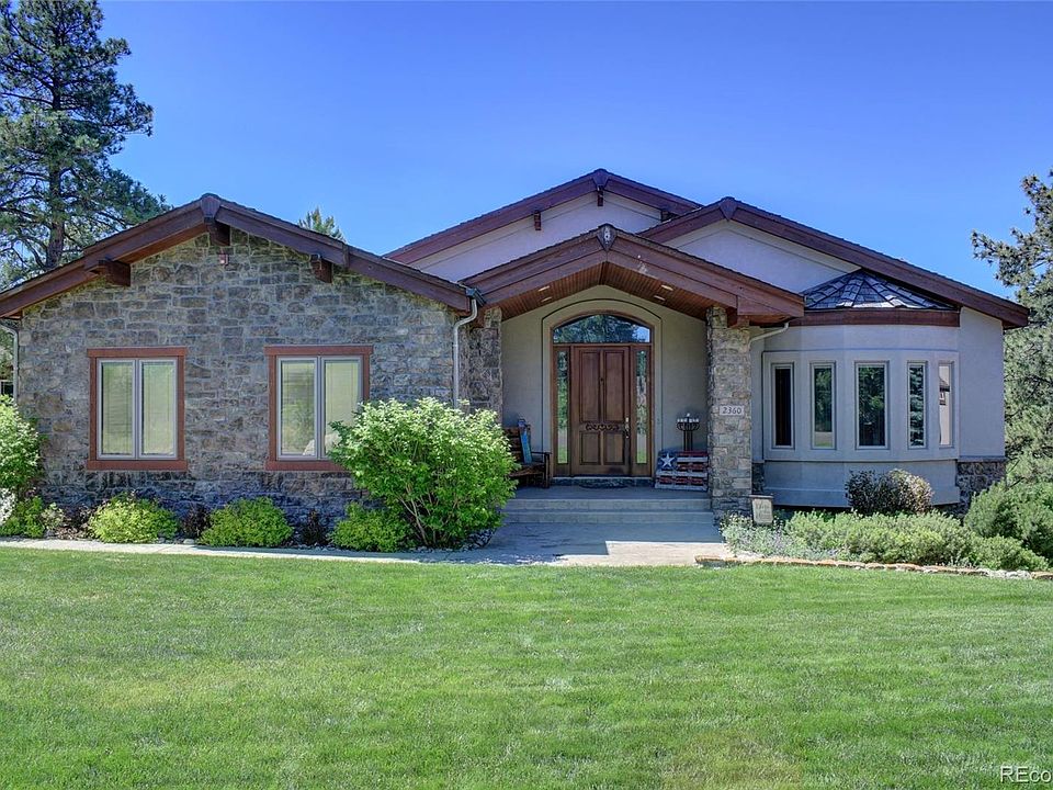 Incredible opportunity to own this 6 bed, 5 bath custom home on a three-quarter acre lot backing to open space in the Escavera neighborhood of Castle Rock. Gorgeous formal entryway with large plank wood flooring and tile inlay. Private executive level main floor office features warm wood wainscoting, tray ceiling, and crown molding. Enormous kitchen includes multiple prep areas, custom cabinetry, rich granite, walk in pantry, and stainless appliances. Enjoy the Colorado feel in this great room with cathedral ceiling, a gorgeous wood burning fireplace with impressive stonework and built in details, and floor-to-ceiling windows overlooking the pine trees. Private owner's suite has room to spread out with spa-like ensuite bathroom and access to the wraparound deck. Finished walkout basement includes huge rec. room, large gas fireplace with stone surround and mantle, reclaimed wood saloon / wet bar with impressive attention to detail - must experience for yourself! Room to spread out and play in this backyard with covered deck, large lawn, and mature trees. THIS IS THE ONE!
