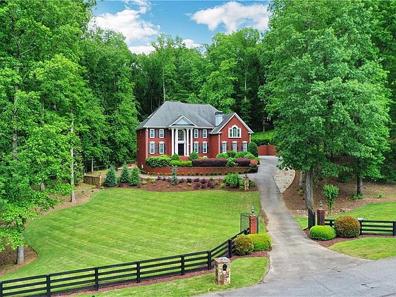 This magnificent Georgian estate is the epitome of southern grandeur. It sits on 3+ private acres. Four stories in total, this palatial home features luxury finishes throughout - grand staircases, 20-foot coffered ceilings, 5 gorgeous marble and stone fireplaces, granite and marble bathrooms, intricate moldings, second kitchen, elegant keeping room, four season garden room, library, gym, and so much more. The main kitchen is large, elegant and boasts granite, a huge island, SubZero and Thermador appliances, palatial windows, with several French doors leading to the serene backyard. The 8 stall barn with wash and tack rooms is ready for horses, a total of 5 car garages (3 on the main level, 2 on the terrace level) with carriage doors, acres of gorgeous land, complete with pool plans...all in the heart of Milton, make this incredible estate complete. Words cannot properly describe the large scale and elegance of this home...you must see it!