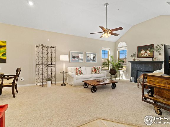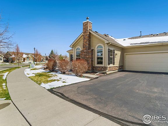 Prepare to be captivated by the charm and elegance of this single-level condo villa located in the Pleasant Valley neighborhood of Longmont. Crafted with meticulous attention to detail, this home is designed to offer the spaciousness and comfort of a single-family residence, without the hassle of exterior maintenance. Inside, an expansive open-concept living area unfolds before you. The high and vaulted ceilings create an airy ambiance enhanced by fresh interior paint and plush carpet flooring. In the heart of this space sits a fireplace, promising to be the centerpiece for gatherings or cozy nights at home. Prepare culinary delights in the kitchen that features new stainless steel appliances and quartz countertops, a tiled backsplash, and plenty of storage space including a large walk-in pantry that ensures you have everything you need at your fingertips. Retreat to the primary suite, your private sanctuary boasting an ensuite bathroom and a walk-in closet. An additional bedroom provides a versatile space that can adapt to a multitude of uses, whether it's a home office or guest room. Step outside to the lovely concrete patio, a quaint space where you can sip your morning coffee amidst the serene surroundings. Above the 2-car garage lies an attic for additional storage space. Embrace the carefree lifestyle with maintenance-free living and access to fabulous amenities, including a clubhouse and an outdoor pool. Conveniently located just minutes away from local amenities, as well as the Ute Creek Golf Course.
