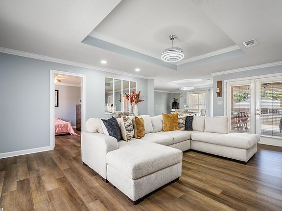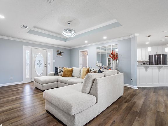 Your Search is Over!! Welcome to Wind Dance Estates in West Mobile - This stunning 4 bedroom and 2 bathroom house, with an office, is situated in a convenient location close to schools, shopping centers, and restaurants. The entire house has been revamped and looks absolutely beautiful! With it’s open floor plan, freshly painted walls, new laminate flooring, new porcelain tile floors in baths, crown molding, new LED lighting throughout, new fan chandaliers and custom touches that every buyer will appreciate, this home is sure to capture your heart. The kitchen is equipped with a breakfast bar and nook, white cabinets, ample storage space, stainless steel appliances, backsplash and a pantry. The cozy family room features a gas log fireplace. The primary bedroom is spacious and features tray ceilings, and an en-suite bathroom that is absolutely gorgeous! Comes complete with an oversized shower, custom tile work, new vanity and fixtures, cubby lightning, new LED lighted mirrors, Bluetooth speakers to set the mood while you soak in your whirlpool tub and a spacious walk-in closet. The laundry room is larger than average, and the extended covered back porch and new privacy fence in the backyard are perfect for outdoor entertaining and relaxing. With plenty of space in the driveway to accommodate more than 6 cars, this property has it all. A security system is also in place and will convey with the property. Roof installed in 2021, water heater in 2021, and fence in 2022. Schedule a showing today so you don’t miss out on the opportunity to own this amazing home! Don’t miss this opportunity to own this AMAZING home so call to schedule a showing today! Information supplied by seller is deemed reliable but not guaranteed. Buyer/buyer's agent to verify all pertinent information.