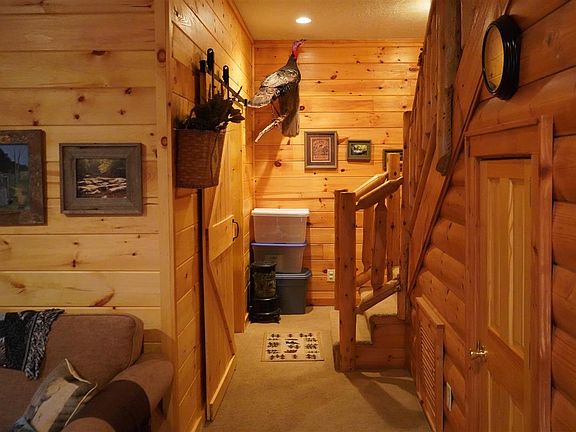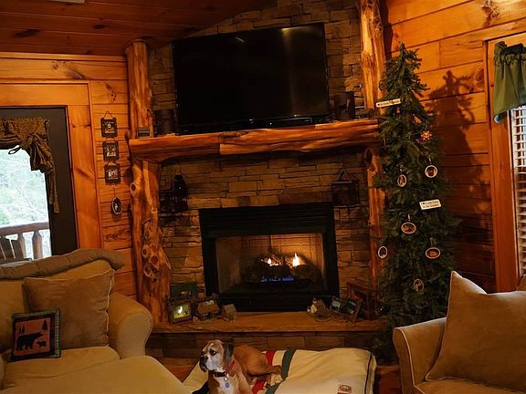 1 owner, private log home residence on shady creek. Never been on rental program and well maintained by owner. New A/C, heat installed 1/2020, Septic tank pumped 8/2019. New master bedroom carpet installed 7/2019. A den/office area was added in 2018 & could be used as a 3rd bedroom. Hardwood floors in kitchen & great room. 2 covered decks overlooking the creek. Apple trees on property produced apples last year. Gas fireplace upstairs in great room.