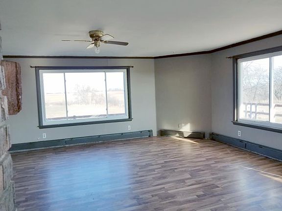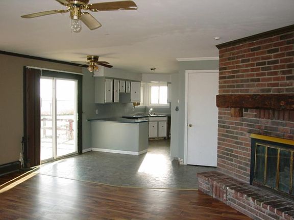 Older 3 bedroom, 2 bath home with two fireplaces (1 in living room and 1 in the basement)on a full, unfinished basement. The kitchen/dining combo sliding glass doors gives you access to the wrap-around deck. 76' x 60' shop has three 14' high doors setup for drive through of trucks. Building also has 16' ceiling along with a concrete floor and electric.