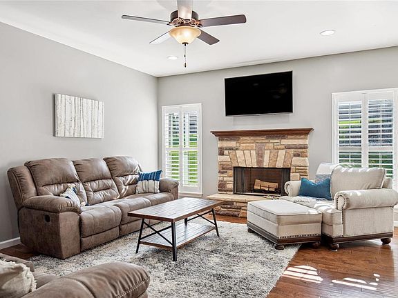 Welcome to this charming ranch home in the sought-after Strawberry Ridge subdivision. Not many one-story homes with 3-car garages are available! Upon entering you will be impressed by the beautiful wood floors, open floor plan and pretty stone fireplace. The cozy living room flows into the dining area and kitchen. The spacious kitchen features 42” cabinets, granite countertops, stainless steel appliances, under-cabinet lighting and a nice-size pantry. Single story living includes a convenient laundry room right off the kitchen. Another highlight of this home is the primary suite featuring a large walk-in closet and full bathroom with dual sinks and separate tub and shower. The main level is completed by two more good-size bedrooms and another full bath. Need more space? There is a big living area in the lower level and a third full bath. Other features include plantation shutters throughout, a full-fenced back yard, sprinkler system. Neighborhood has a pool, clubhouse and lake!