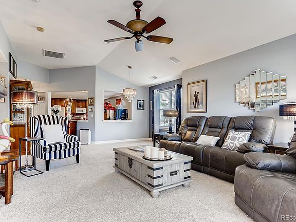 Come home to this beautiful townhome and relax in the comfortable living room with vaulted ceilings, ceiling fan, surround sound and a cozy gas fireplace with blower. The wonderful kitchen with granite countertops, upgraded cabinets with crown molding, hardwood floors, and a center island also has plenty room for you to share a meal with your entire family. Relax in the lovely master bedroom with vaulted ceilings, ceiling fan, large walk-in closet and master bath with two sinks. The 2nd bedroom is great for guests or an office. Drink your morning coffee on the enlarged and fenced in patio, perfect for pets. There is plenty of storage with extra cabinets in the laundry room and garage too. Enjoy the clubhouse with indoor and outdoor swimming pools, fitness center, tennis court, golf, restaurant, activities and more!