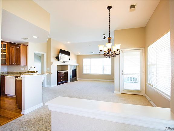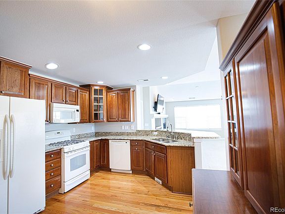 Amazing opportunity to own a beautiful 2 bedroom 2 bath home with a 2 car garage in the gated Heritage Eagle Bend Golf Course Community. The minute you walk in the door you are welcomed into this spacious end unit with abundant light and an open concept floorpan with vaulted ceilings. This home is move in ready with fresh paint throughout, wall mounted t.v. with surround sound in the family room, includes all the kitchen appliances and the washer and drier. Some of the stand out features of this home are the Hardwood floors in the entry and kitchen, gorgeous cherry cabinets throughout (including custom buffet in kitchen), Granite counters in kitchen, stone fireplace surround, and custom cabinets with epoxy floor in the garage. Off the dining room is a large covered patio and deck expanding your usable living space to sit and enjoy the outdoors on those beautiful sunny Colorado days. The Master Bedroom has an ensuite spacious master bath that has tile floors and countertops, double sinks, oversized shower, cherry cabinet to store your linens, and an attached very large walk in closet. The HOA covers exterior maintenance, snow removal, and lawn care so you can spend your time enjoying all the amenities this resort style community has to offer. Welcome home! https://heritageeaglebend.com/