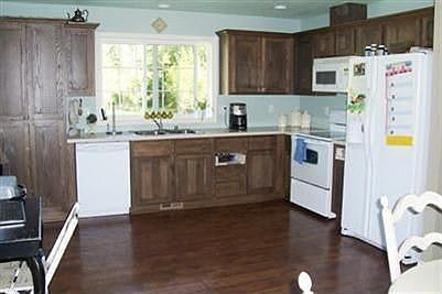 Newer One Level Home! New paint, 2 panel doors, master w/walk-in closet & shower, open kitchen with beautiful cabinets and built-in microwave. Laundry w/sink and shelves. Plumbed for central vac. Private treed 5.29 acres. Lawn in front & back. Covered front porch, patio in rear. Dog kennel, 16x28 shop.