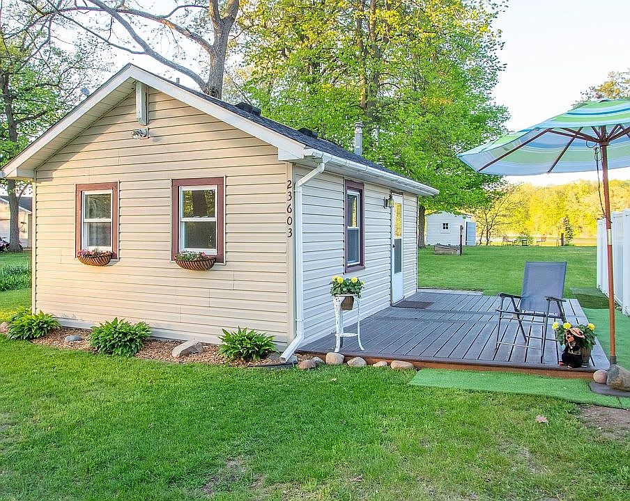 St. Joseph River frontage! What a great price for your own piece of paradise. Towards the end of a dead end, private road on a peninsula, you will be surrounded by peacefulness the minute you park your car. This year 'round, well maintained cottage is the perfect spot to de-stress. Whether you want to read, fish, bird watch, boat, canoe, enjoy a campfire, ride a bike or go for a walk, this is the perfect spot. Wonderful location, close to the Langley Covered Bridge and park, the St. Joe Co Fairgrounds and an easy drive to spend the day in Shipshewana. The tiny house movement is here- you will be right in style. Cute, comfortable and charming, there is nothing to do but relax. Welcome Home!