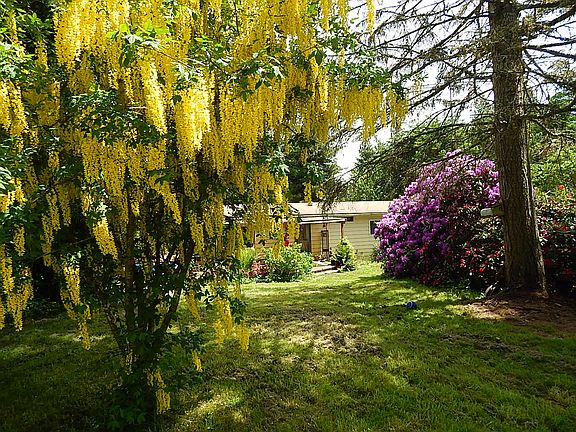6.46 ACRES WITH A FUTURE! Stunning, useable/friendly rolling terrain land and great light for gardening. Near perfect mixture of trees to pasture. Apple, cherry trees, wild Italian prune plum trees, red plum tree and hazelnut/filbert trees on the property, as well as varied timber including a few magnificent cedars. Landscaping with mature plantings pop with our Oregon spring colors. Property is fenced and cross fenced. Private setting off road. 1975, well cared for manuf home has HUD plates. Replace now or use for dwelling until ready to build your dream home. Add'l outbuildings include smaller wood frame shop structure with three rooms, single carport awning, shelves and rear log storage cover. Tool shed, chicken coop, and ample room for new pole barn and/or multiple building sites. See also Lots/Land RMLS# 15699129.