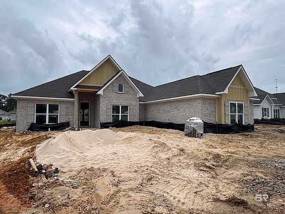 Your dream home is waiting for you at the popular community of Primland! This peaceful close-out community is situated just off County Road 12 near Graham Creek Nature Preserve and minutes from the beautiful Gulf Shores/Orange Beach beaches, exquisite restaurants, and fabulous entertainment! The beautiful Birch plan is extremely open with covered front and back porches, and a spacious 2 car garage. You will love the kitchen which includes a large island, painted cabinets, a large single basin farm sink, high end Whirlpool appliances w/ gas cooktop, wall oven, built in microwave, dishwasher, beautiful quartz counters, and a fabulous walk-in pantry with wood shelving. Soaring ceiling heights, charming light fixtures, cased windows and doors, and a cozy gas log fireplace give a warm and inviting feel to this home. Also included is a tankless water heater, and floor plug in the family room. The large primary bedroom, located at the rear of the home, features a trey ceiling with crown molding, LED lighting and a charming ceiling fan. The primary bath has a double vanity w/ quartz counters, a separate water closet, a magnificent walk-in tile shower and 2 walk-in closets. Mohawk Revwood flooring in main areas including all bedrooms, and tile in laundry and baths. The home comes with a 1 one year termite bond, warranties, and is Gold Fortified, which may save you on homeowner's insurance. This is a TRULAND floor plan under construction with an approximate completion of February '25. Buyer to verify all information during due diligence.