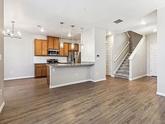 Exquisite Sorrel Ranch Townhome Near Southlands Mall! Discover sophisticated living at this nearly new Sorrel Ranch townhome, ideally located near Southlands Mall, the highly sought-after Cherry Creek School District, and a host of local amenities. With state-of-the-art features and a prime location, this residence combines style, convenience, and comfort for effortless living. Step inside to find high ceilings and an open-concept floor plan that creates an airy, elegant atmosphere. The modern kitchen, equipped with granite countertops, stainless steel appliances, and a gas range, seamlessly flows into the dining area and spacious great room, perfect for entertaining. Enjoy relaxing on your private back patio or taking advantage of the nearby community pool. The main floor offers a convenient half bath, laundry room, storage space, and direct access to the attached garage. Upstairs, the luxurious primary bedroom boasts a walk-in closet and a private en-suite bath. An additional bedroom, also with a walk-in closet and private bath, offers comfortable accommodation for guests or family members. This home is move-in ready and available for quick closing! The adjoining greenbelt and nearby dog park make it ideal for pet owners. The HOA covers the community pool, maintenance, trash, snow removal, water, and sewer services, making homeownership here a breeze. Located just off E-470, this townhome offers an easy commute and is steps away from shopping, dining, and entertainment at Southlands Mall. Don't miss your chance to own this exceptional property in a prime location!
