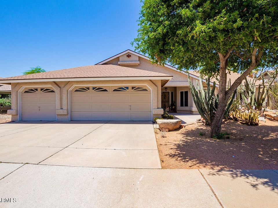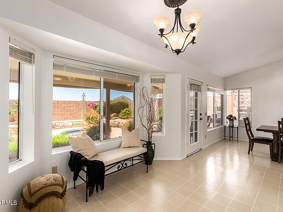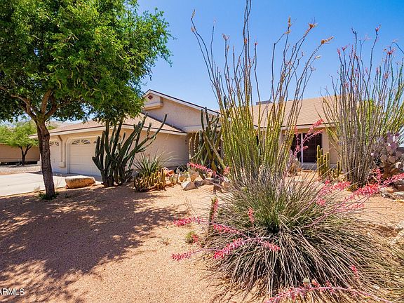 Immaculate Energy Efficient Insulated Block Home w/Mtn Views & fabulous outdoor spaces backing to 33 acres of Pristine Desert creating privacy, views & gorgeous sunsets! Take in the colorful front landscaping before stepping inside to split floor plan, soaring ceilings, fresh paint & sun-filled windows. Open concept kitchen w/newer LG SS appl & undermount lighting. Solar, addt'l attic insulation, dual pane windows & ceiling fans are only some of the energy efficiencies! Resort like private backyard w/lush foliage, water features, firepit, pergola, raised patios, shed, & huge cov patio. Newer roof & AC's replaced in 2011. Extended 3rd bay in 3cG. Prime location near recreation areas, water park, golf courses, baseball fields, railroad park & Thunderbird Mtn hiking trail system. Easy access