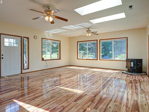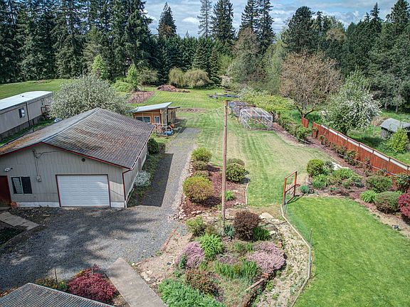 Escape the big city and spread your wings inside this 3400sf spacious dayranch home on 1.29 level acres with a finished basement perfect for extra living space for extended families. Features: 4 bedrooms + bonus room, 3 full baths, newer laminate flooring, 2 fireplaces with pellet inserts, 1 freestanding pellet stove in the upstairs living room, a soothing hot tub in the solarium/sunroom, newer roof (2015), and newer heat pump & electric backup furnace (2021). The kitchen has slab granite countertops and black stainless (no smudges showing) appliances. There is ample room to create another kitchen space in the lower level laundry room (range, sink, & water is already there). Outdoor enthusiasts will appreciate the bed of roses, perennial garden in bloom, vegetable garden boxes, mature pear, apple, and plum trees, 150 ft of grapes, strawberries, and blackberries. The detached garage/shop (28'x36") has an oversized 1-car door, but there is room to fit more than 2-cars. It has a separate electrical panel with a 220V outlet. Start naming your chickens because the chicken coop is already here. Just minutes away from freeway access! It is only 30 minutes to the PDX airport.