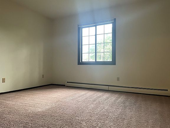 Fitchburg - 1st floor, 2-bedroom apartment with 2-car garage and 1-bathroom in a colonial-style fourplex. Dining room, AC plus ceiling fans, and a patio. Carpeted with wood laminate floors in kitchen and dining. Kitchen supplied with dishwasher, fridge, range, and disposal. Tenant pays electric utility only, currently just $51/month on a budget plan. Storage unit and shared, coin-operated laundry in basement. Preauthorized pets accepted. We show by appointment six days per week.
