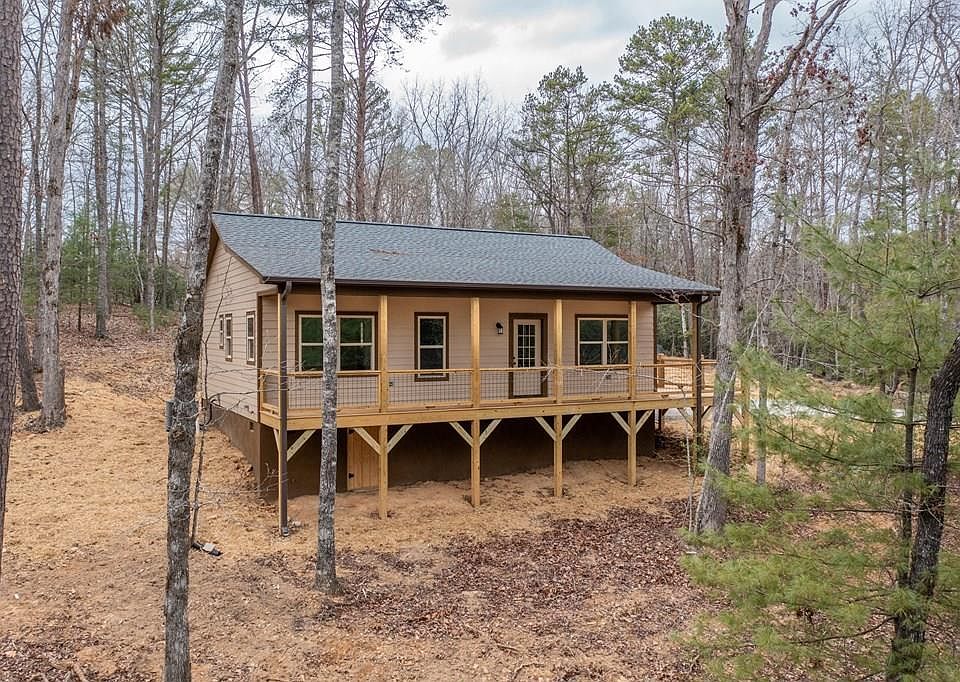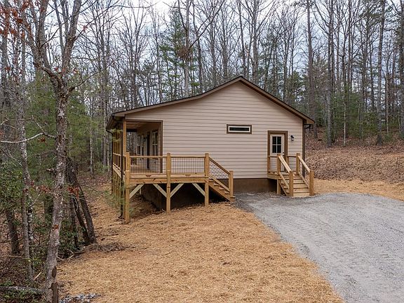 BRAND NEW CONSTRUCTION in Murphy! 2 bed/2 bath cabin. This home features a desirable split floor plan, privacy, and comfort. Open concept kitchen/living room with the beautiful stacked stone gas log fireplace being the focal point! Tongue and groove ceilings with recessed lighting provides a rustic charm while keeping everything light, bright, and airy! Maple kitchen cabinets with a toffee finish and soft close slides and hinges. Interior paint color is Sherwin Williams Lattice. Pergo waterproof flooring throughout! Windows trimmed with wood. Laundry closet in hall. Prepare to be amazed by the spacious walk-in closet off the master suite—it's a WOW factor! Large 6x37 covered deck perfect for cooking out with friends! Wooded lot with level/rolling land. Shingle roof. Super convenient and low maintenance with everything being on one level. Welcome home!