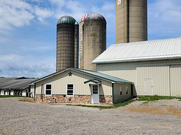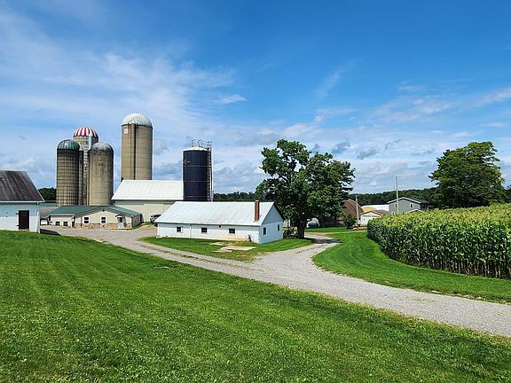 This property is going to auction 11/17/23 at 11:00 AM and is being sold with reserve. LISTED PRICE IS ONLY A SUGGESTED OPENING BID, AND IS NOT INDICATIVE OF THE FINAL SALES PRICE WHICH WILL BE BY SELLER CONFIRMATION DAY OF AUCTION. Terms: Down payment of $75,000.00 required day of auction. Settlement on or before February 15, 2024. Transfer taxes to be paid by buyer. Real Estate taxes shall be prorated. Exceptional 140-acre farm with a modern 4-bed, 4-bath home constructed in 2020. Nestled amidst the picturesque Indiana County hills, the property offers a unique blend of natural beauty and agricultural functionality. The farm comes with the remarkable advantage of free natural gas, providing 700,000 cubic feet annually. Currently engaged in dairy production, the farm has a contract with Turner Dairy. The land's terrain showcases fertile soils and great layout for production. The dairy facility is a true standout, featuring 104 stalls and cutting-edge equipment like BouMatic automatic take-off milkers with a trolley system, Cool Blue Fan-Sprinkler System, milk plate cooler system, and a water softener system. The setup includes a milkhouse built in 2012, a substantial manure pit constructed in 2013 with a capacity of 650,000 gallons, and a Virginia-style heifer/calf facility, equipped with SturdiBuilt Gate& Fence systems, new in 2014. Additional structures encompass a living quarter-equipped 24’x36’ garage, a 45’x40’ garage/shop, a spacious 32’ high 60’x120’ Shed, and a Yoder Way Building (50’x108’) with a large door for versatile usage. A large 70’x52’ Concrete Block Shop with multiple over-sized bays, offering ample space for any farm repair. Furthermore, the farm features an array of silos, including a Harvestore (17’x51’), a Star Poured Concrete Silo (24’x80’) plastered in 2021, a Fickes Stave Silo (20’x80’), a Star Poured Concrete Silo (16’x60’) with a new fill pipe and new plastering in 2015, and a Stave Silo of 16’x60’ with plastering in 2013. Auctioneer’s Note: Seize the opportunity to own this expansive farm, where many modern opportunities mix for agricultural excellence.