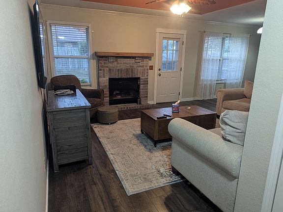 Great partially furnished home in a quiet, family-friendly neighborhood, not far from Missouri State University. INCLUDES WASHER AND DRYER. This home has recently installed laminate flooring throughout and brand new upgrades in Master bathroom. The kitchen features granite countertops and stainless steel appliances. Privacy fence back yard with a fire pit area and back deck. Rent includes trash service and bi weekly lawn service! Up to two small or medium size pets over 6 months of age allowed upon approval. No smoking in home. Renter will be responsible for utilities. No smoking. Small pets (dogs and cats must be over 6 months of age) permitted. Fireplace is not operational. 1 year lease required with option of month to month at conclusion of lease.