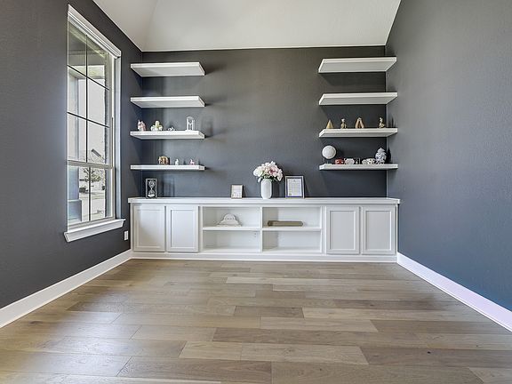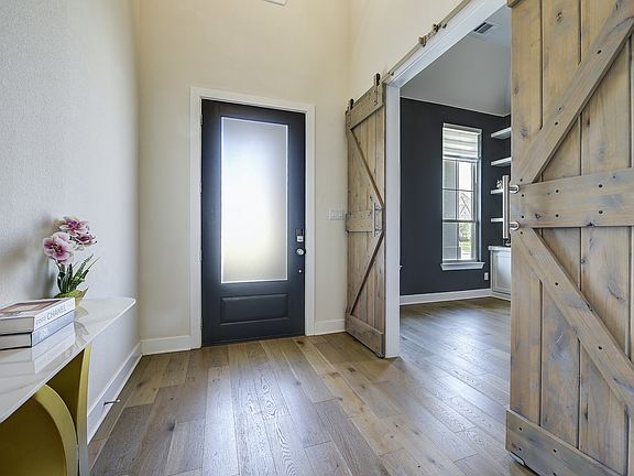 Beautifully designed modern home available for lease in the highly sought-after Star Trail community! This stunning property combines style, comfort, and functionality with thoughtful details throughout. Step inside to soaring ceilings and a spacious living room highlighted by a floor-to-ceiling brick fireplace and a built-in china cabinet, adding both charm and character. The heart of the home is the chef's kitchen, featuring a large island with a modern chandelier overhead, farmhouse sink with sleek faucet, double ovens, gas stove, and built-in refrigerator. Washer and dryer are also included for your convenience. Light wood floors flow throughout the main areas, leading to a private office with floating shelves, custom cabinetry, and a barn door entry. The utility room is designed with practicality in mind, offering a sink, built-in cabinets, and counter space. The primary suite is a true retreat with a spacious bedroom, spa-like ensuite bath with dual vanities, a makeup area, standalone soaking tub, and glass-enclosed shower. The walk-in closet is a dream, boasting floor-to-ceiling shelving and custom built-in drawers. A secondary bedroom is also conveniently located downstairs. Upstairs, you'll find a versatile media room, game room, and three additional well-appointed bedrooms, perfect for family or guests. The outdoor space is equally impressive, with a large covered patio and grassy yard ideal for relaxing or entertaining. Best of all the home comes fully furnished, making your move seamless and stress-free.