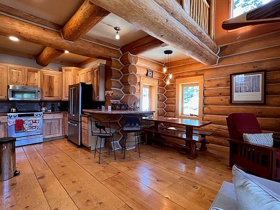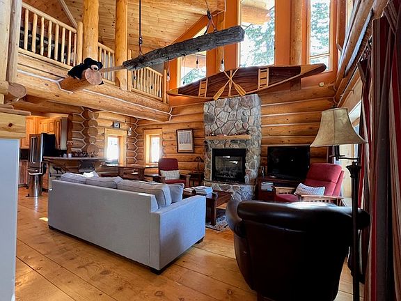 A Mammoth Mountain custom log home with 26 ft vaulted ceilings. Bring the whole family or a group of friends to this spacious log home. It is nestled in a private secluded area across from the Valentine Reserve and only a few miles from the ski lifts. Enjoy gorgeous mountainous hikes and a short drive to the lakes spring through fall. The kitchen is stocked to enjoy cooking with your group! You will also be 2 miles from local favorites such as Mammoth Roasters, Distant Brewing, Mammoth Brewing, and others!