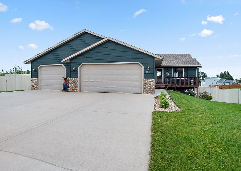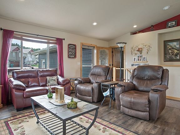 This 4 bed 3 bath home is located in a much-desired neighborhood. There are many great features to this home, such as custom hickory cabinets, doors, and trim. This home offers main level laundry, a three-car garage, and great space. This home has a large fenced in backyard with automatic sprinkler system, walkout basement, and stamped concrete back patio. You will love the views from your back deck of Bear Butte, Sturgis, and the hills.
