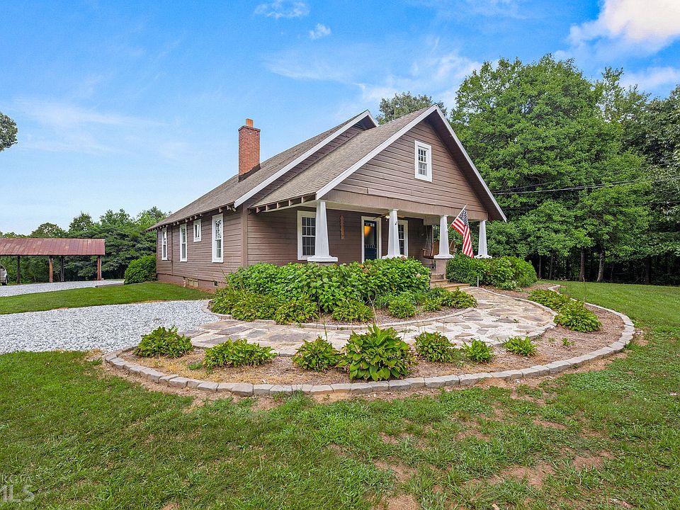 Quaint home with rustic features. This three bedroom, two bathroom home greets you with a cozy front porch, hardwood floors, and a stacked rock fireplace encased by French style doors. The dining room features unique lighting and a breakfast bar that opens up into the kitchen, which has lots of countertops. The laundry area is spacious and even has a folding table. The master bedroom is complete with a roomy closet and double vanities in the main floor bathroom. The home also is complete with a large deck that opens up into the back yard. The natural wood throughout the home add to its Southern charm.