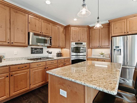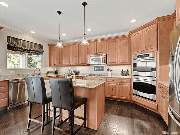 The main level features refinished hardwood floors throughout. The open design kitchen includes marble countertops and stainless steel appliances. The kitchen flows into the dining room and family room for easy entertaining. The covered deck is perfect for Colorado evenings. The upstairs carpet was replaced in 2020. The primary bedroom boasts a 5 piece en-suite and walk-in closet.