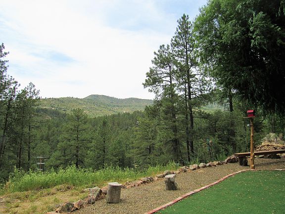 This amazing, completely remodeled beauty is nestled on 5.35 acres high on a mountain above Crown King. Parcel is a patented mining claim bordering National Forest. Spacious living /dining area is perfect for large gatherings. Media Room is enormous with walk in closet, private patio & elegant bath. Entire lower level has travertine stone tiles throughout. Additional bedroom with powder room downstairs is perfect for guests. Upstairs you'll find four large bedrooms & two full baths. Master Suite boasts an elegant bath. Remodel is complete with New Siding, New Roof, New Windows, New upgraded kitchen & appliances, One car garage, Shed, Multiple Decks, Covered Pavilion, Massively high ceiling w/antique tin tiles & much more. Close to town on a quiet secluded street