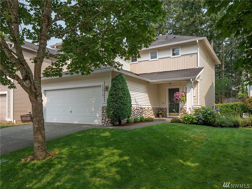 Lovely Home in Patrick's Faire. Walk out your bkyd right into the park & playground or relax in the hottub on your patio. Downstairs has an open floor plan including, liv rm w/gas frpl, hdwds in the kit/din/entry. Kit also has granite counters & a breakfast bar. Upstairs has 3 nice bdrms all w/ceiling fans, a laundry nook & a full bath. The master has full bath & walk in closet. Great location w/easy access to HWY 169 & HWY 18 for commuting, close to shopping & schools. Tahoma School Dist.