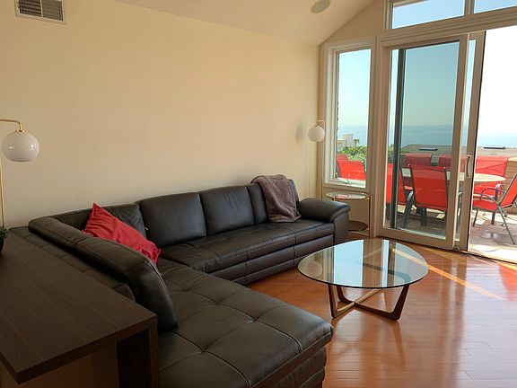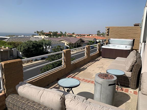 Located in the 24-hour gated oceanfront community of Niguel Shores, this one-story seaside property has been expanded and remodeled to perfection with hardwood flooring, lovely windows and doors, recessed lighting, vaulted ceilings, inside laundry room, and hot tub/spa. The home features a spacious open concept design with panoramic ocean and Catalina Island views from all main rooms. The kitchen is a delight with stone counter tops and a breakfast bar all in neutral tones and the center fireplace is dual-sided and allows for numerous design options. The master suite includes a beautiful bath, ocean views, and Plantation Shutters. A gated courtyard entry patio provides a secluded and serene setting and the superb location is just minutes from the oceanfront park and parking lot or to the 3 million dollar Clubhouse complete with pool, spa, sports courts, tennis/pickle-ball, and more...enjoy the fun, festive, and friendly lifestyle living in Niguel Shores...The best-kept secret along the coast. Master has a queen and an ocean view stand up desk. 2nd bedroom has a king, and 3rd has 2 queens. Utilities are included.
