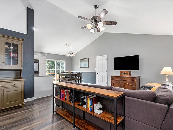 - Dining/Living Room Combo, Kitchen/Dining Room Combo, Cathedral Ceiling(s), Open Floorplan, Walk-In Closet(s), Breakfast Bar, Double Vanity, Separate Shower, Custom Cabinetry, Eat-in Kitchen, Granite Counters