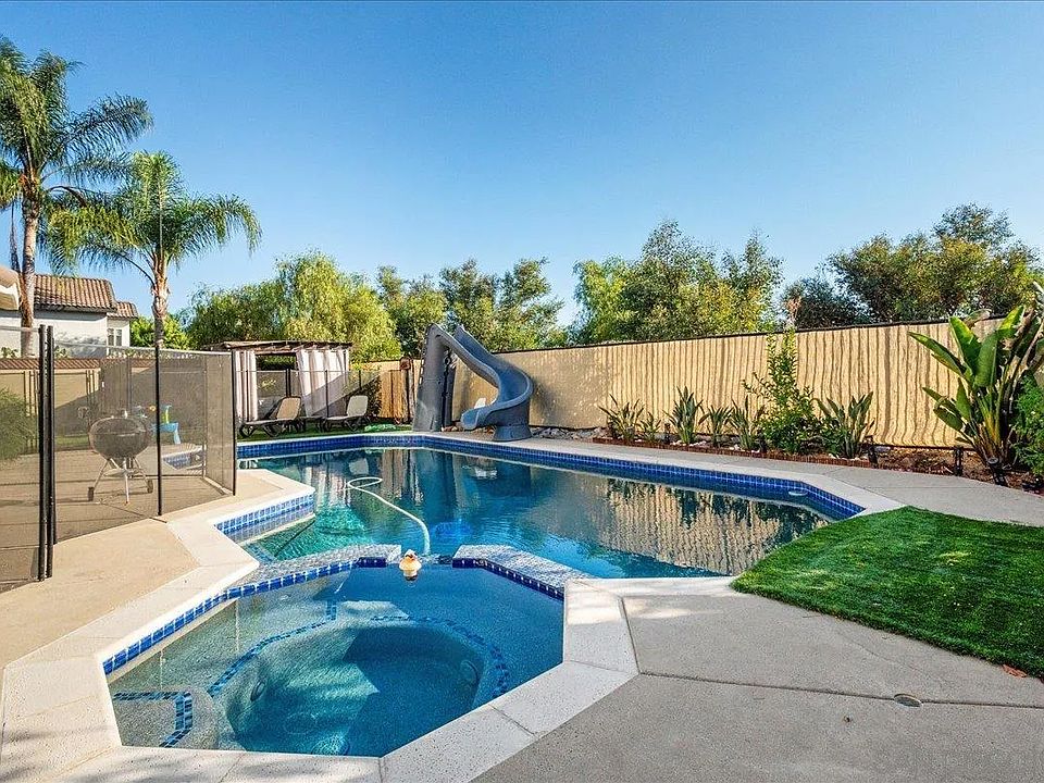 Welcome to Kettle Road where you can truly have it all - from stunning mountain views to a gorgeous pool and spa, this home is complete with 4 bedrooms and spacious living areas. As you enter the front door you will immediately be greeted by high, vaulted ceilings and a regal staircase. A large family room, with a cozy, wood-burning fireplace, sits off the spacious kitchen which has been updated w/ granite counters and stainless appliances. Enjoy dinner in the formal dining room, outside under the pergola, or casually at the kitchenette. This is truly a comfortable and functional floor plan. This backyard is impressive and we think extra special. It is perfect for hosting family and friends in the private, resort-style area, with sparkling pool and spa that have all been newly upgraded. This home offers solar, Tesla battery packs, a 3-car garage, new hot water heater, and so many more wonderful features. Shopping, schools and wonderful recreational areas are all within 2 miles of this great home. NO HOA.