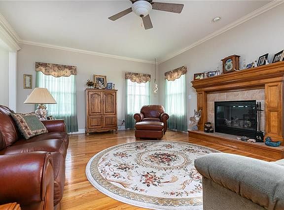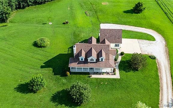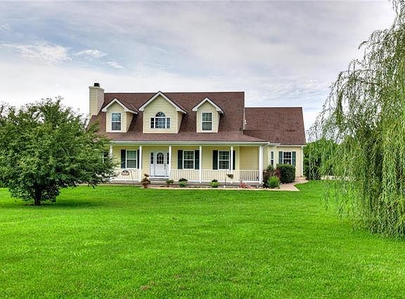 Lovely CUSTOM BUILT country style home greets you w/welcoming wrap around front porch located on 14+ ACRES of beautifully treed green space! Generous kitchen & dining area perfect for entertaining features beautiful custom cabinetry. Lrg living room offers gas fireplace. Main level master boasts large bath w/garden tub, custom tile shower & walk in closet. 3 addtl oversized bedrooms w/plenty of large closets through out! The oversized suspended garage allows parking for 4 vehicles or tons of storage space.