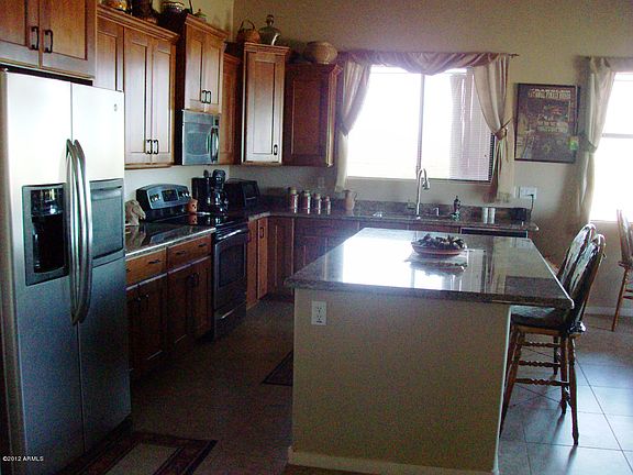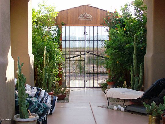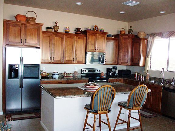 This is one of the most well-built homes in Wittmann! So many upgrades! Room for your horses, too! This gorgeous 2555 sq ft home has 4 bedrooms and 2.5 baths with the popular split floor plan. This energy-efficient home features a beautiful kitchen with large kitchen island, granite countertops, alder cabinets and stainless steel appliances; a family room with a gas fireplace; a large master bedroom with separate entrance; a master bath with double sinks and a separate shower and aquatic jetted tub; a great front-entrance courtyard; and a large covered back patio. There is an extended length three-car garage, no climb fencing and four Priefert gates. Furniture and/or furnishings may be available outside of escrow. Dont miss the beautiful mountain views!