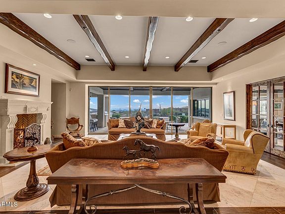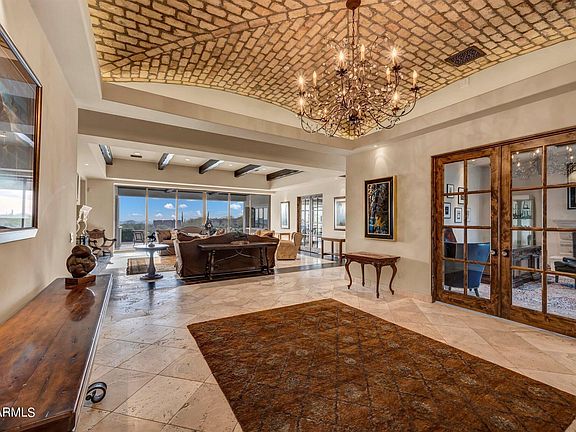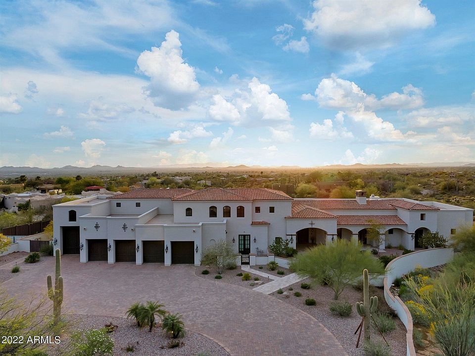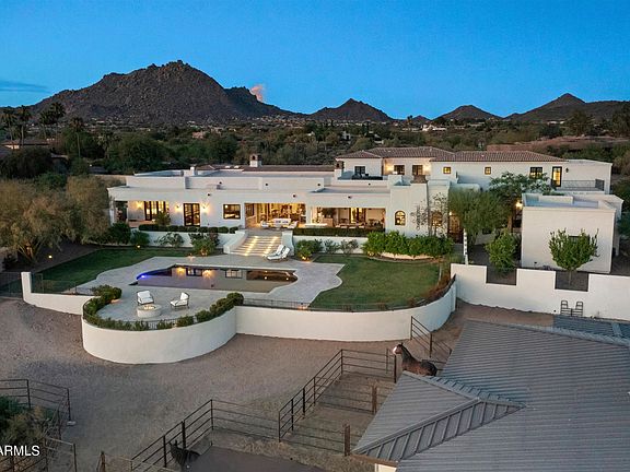 Exceptional custom home and equestrian estate on 3.2 acres surrounded by majestic views of Pinnacle Peak and Troon Mountain and stunning city light views from Carefree all the way to Tempe. Meticulous rebuild in 2016 with great attention to detail, design and materials throughout this private estate. The property includes an 830 SF separate guest house with beautiful upgrades, bedroom, full bath, living room, kitchen and laundry room.The main residence is thoughtfully designed to capture mountain views from every room starting with the great room featuring glass walls overlooking the spectacular property. Each room is accented with custom cabinetry and distinctive ceiling treatments ranging from groin and boxed beam to vaulted and custom carved wood beams.
