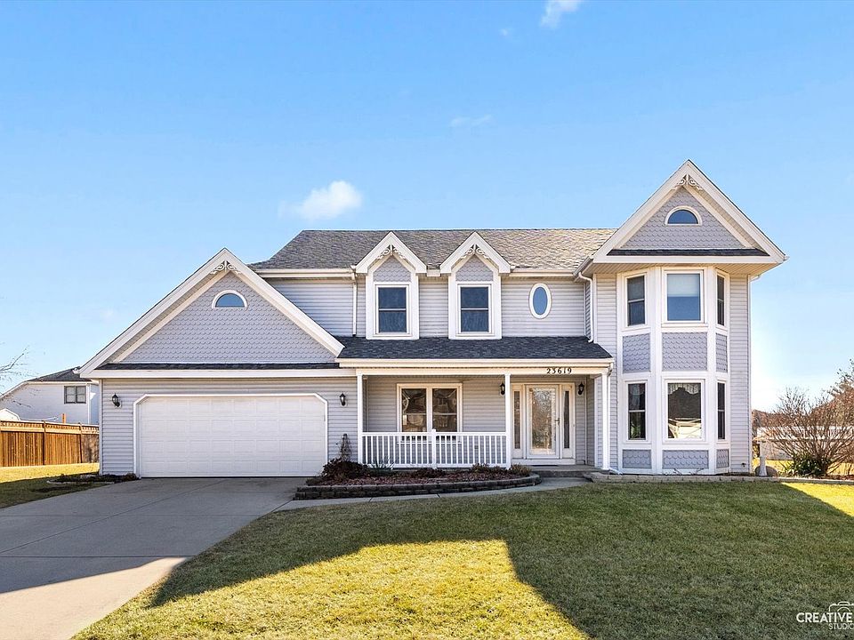 Quiet Street, Immaculate Home, Large Yard. As you step into your foyer your eyes immediately go up to the soaring ceilings above. To your left, you will find your formal dining room with abundant natural light making this room the perfect setup for entertaining. To your right is the formal living room. Head into your spacious kitchen where memories will be made with ample seating, countertop space, ample cabinet storage, and separate pantries for added storage. Light up the fireplace and feel the warmth as you enjoy your favorite TV show or movie to end the night. There is a first floor bedroom with full bath that is perfect for guests or an in-law arrangement, and a half bath complete the main level of this gorgeous home. Make your way upstairs to the left to your private primary suite with elevated ceilings and settle in for the night. Take a bubble bath and melt the day away in your soaking tub. This bathroom has dual sinks, and stand-alone shower, and large walk-in closet. 3 spacious bedrooms and a full hall bathroom can also be found on this level. As the weather warms up head outside to your backyard and enjoy the spring days on your patio. Once the weather gets too hot dip your toes into the above-ground pool and cool off! With this large yard, there is no shortage of space for any activity you like! There is an attached 2-car garage, perfect for your vehicles and any toys you might have! An unfinished basement awaits your final touches. Close to shopping, restaurants, and activities this home is one you won't want to miss!