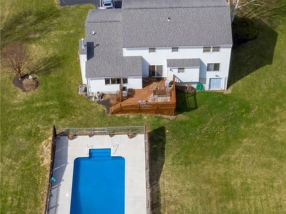 Here is what you've been waiting for. Four bedrooms, 2 1/2 baths, living room, formal dining room, and eat-in-kitchen with slider leading to a fantastic deck overlooking beautiful inground pool and fantastic yard with enough room for the children to play football, soccer, baseball, lacrosse..you name it.. This home also has master suite with walk in closet, first floor laundry and a gas fireplace! Roof is just about 10 years old, there is a newer furnace & central air lot's of new windows, fresh paint and a newly stained deck. All of this located on just under an acre lot in the West Genesee School District! You won't want to miss your opportunity to own this great home.